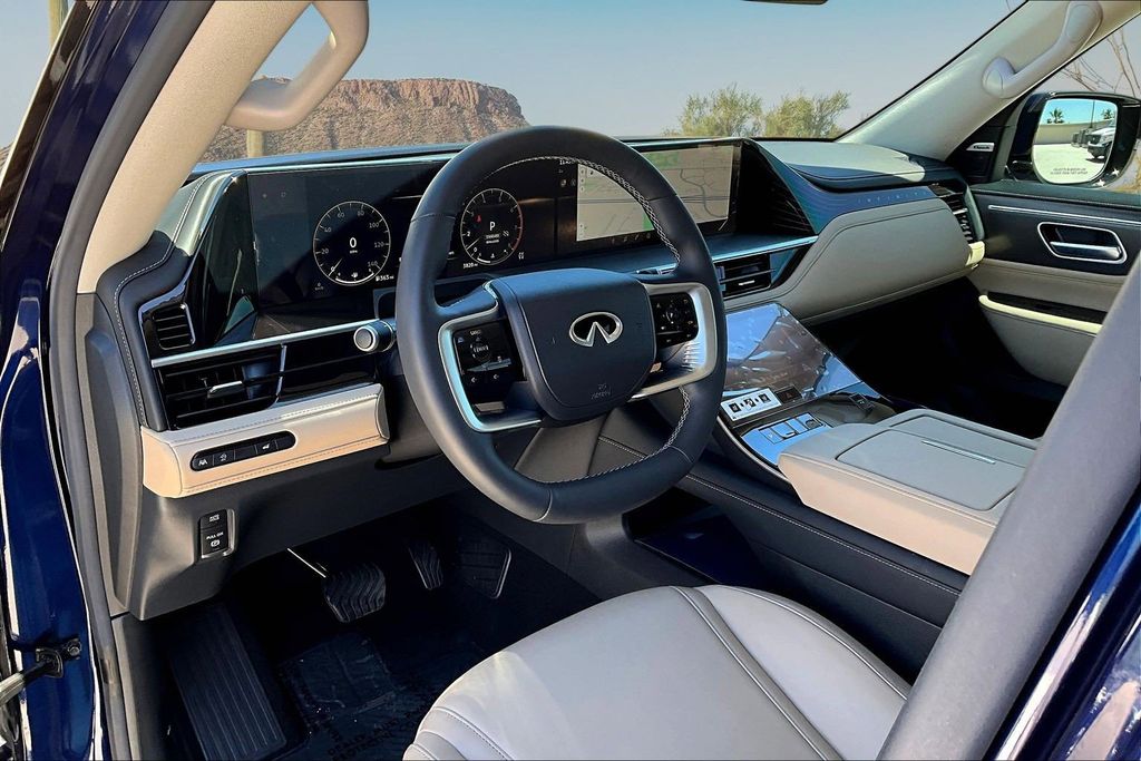 INFINITI Certified Pre-Owned, 20" x 8" Aluminum Alloy Wheels, 3rd row seats: bench, Apple CarPlay/Android Auto, Emergency communication system: INFINITI InTouch, Garage door transmitter: myQ Connected Garage, Navigation system: Google Built-in, Power moonroof, Radio: Klipsch Premium Audio System w/14 Speakers, TailorFit-Appointed Seating Surfaces. 9-Speed Automatic