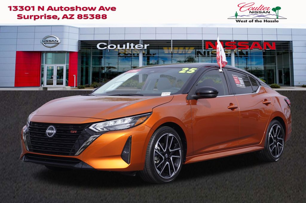 Certified. Orange Metallic/Super Blk 2025 Nissan Sentra SR FWD CVT with Xtronic 2.0L I4 DOHC ***BACK-UP CAMERA***, ***BOUGHT HERE SERVICED HERE***, ***NISSAN CERTIFIED CAR!!!***, ***ONE OWNER CLEAN CARFAX!!**, ***RARE VEHICLE!!! DON'T MISS OUT!!!***, NEARLY NEW, CVT with Xtronic, Sport Cloth, 18" Alloy Wheels, 4-Wheel Disc Brakes, 8 Speakers, Air Conditioning, AM/FM radio: SiriusXM, Automatic temperature control, Blind Spot Warning, Brake assist, Bumpers: body-color, Delay-off headlights, Driver door bin, Dual front side impact airbags, Electronic Stability Control, Four wheel independent suspension, Front dual zone A/C, Fully automatic headlights, Low tire pressure warning, NissanConnect featuring Apple CarPlay and Android Auto, Panic alarm, Power steering, Power windows, Radio data system, Rear anti-roll bar, Rear Parking Sensors, Rear side impact airbag, Rear window defroster, Remote keyless entry, Security system, Speed control, Speed-sensing steering, Steering wheel mounted audio controls, Traction control, Turn signal indicator mirrors.