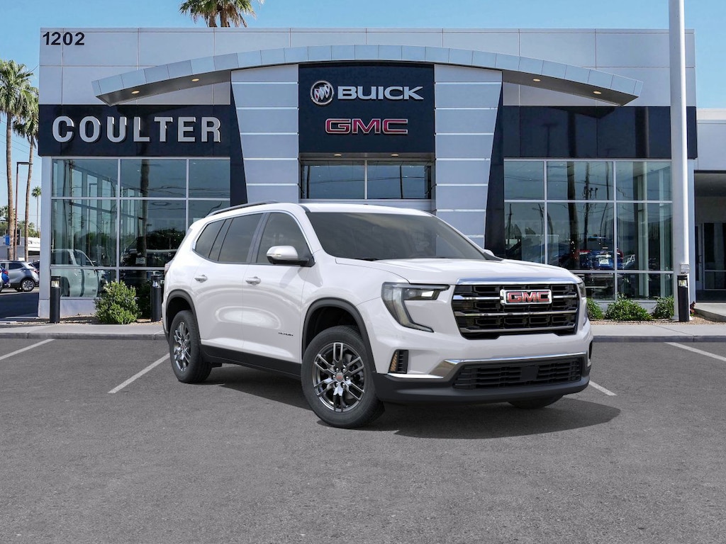 Coulter Phoenix has sold Cadillac's in Arizona since 1923. Shop Coulter - Trust Coulter. 2025 GMC Acadia Elevation White Frost Tricoat 2.5L DOHC FWD 8-Speed Automatic 20/27 City/Highway MPG YEAR MAKE MODEL, LOW MILES, MILES ONLY, FWD, After Dark Cloth. 20/27 City/Highway MPG