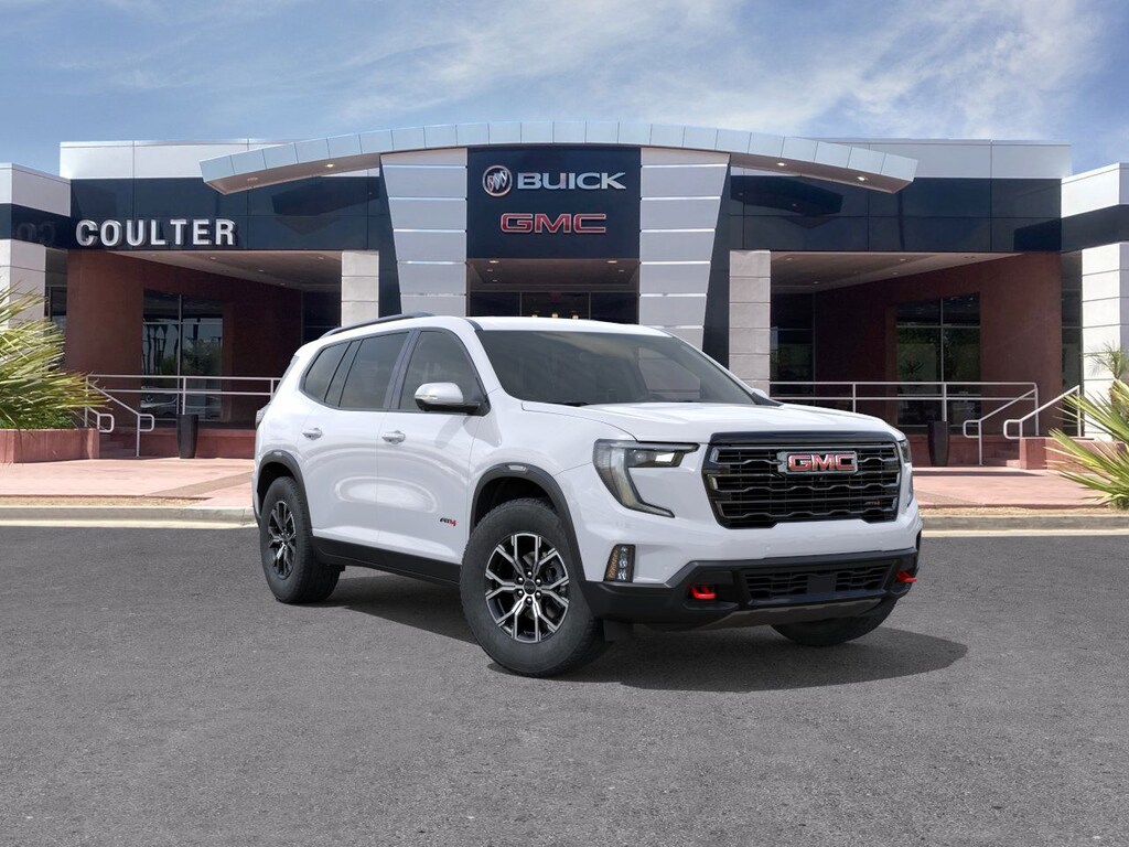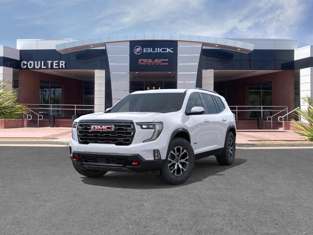 Experience The Difference At Coulter Tempe. Tempe Autoplex - i-10 and Elliot Road. Proud to be part of the Coulter Automotive Group - serving Phoenix since 1923. Summit White 2026 GMC Acadia AT4 AWD 8-Speed Automatic 2.5L DOHC AWD, H6v Forest Storm W/Mahogany Accent.