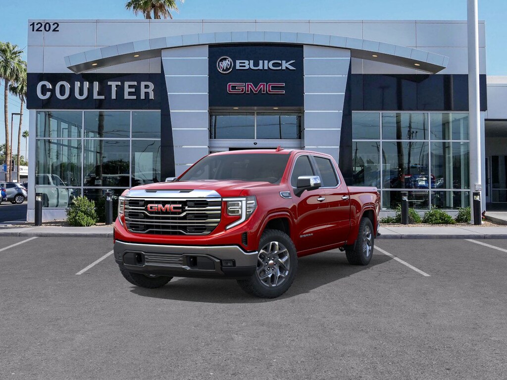 Coulter Phoenix has sold Cadillac's in Arizona since 1923. Shop Coulter - Trust Coulter. 2026 GMC Sierra 1500 SLT Volcanic Red Tintcoat EcoTec3 5.3L V8 4WD 10-Speed Automatic 15/18 City/Highway MPG YEAR MAKE MODEL, LOW MILES, MILES ONLY, 10-Speed Automatic, 4WD, Black Leather.