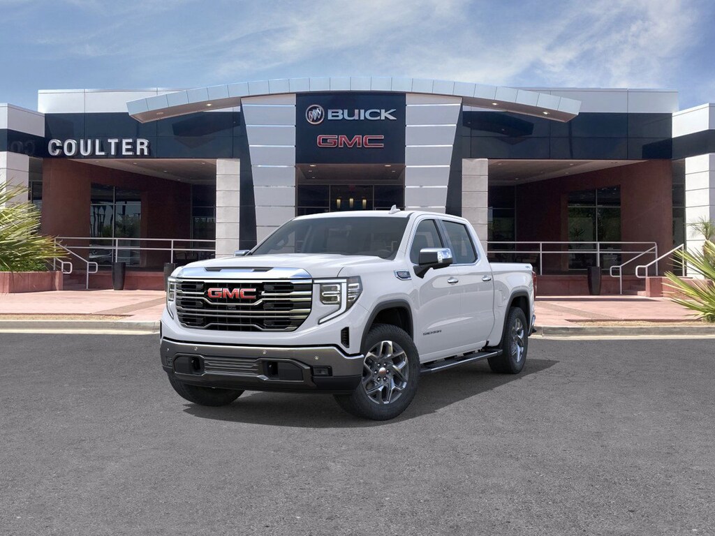Experience The Difference At Coulter Tempe. Tempe Autoplex - i-10 and Elliot Road. Proud to be part of the Coulter Automotive Group - serving Phoenix since 1923. Summit White 2026 GMC Sierra 1500 SLT 4WD 10-Speed Automatic EcoTec3 6.2L V8 10-Speed Automatic, 4WD, Black Leather.Recent Arrival! Price includes: $1750 - Buick & GMC Consumer Cash Program. Exp. 03/02/2026 $500 - Buick GMC Bonus Cash. Exp. 03/02/2026