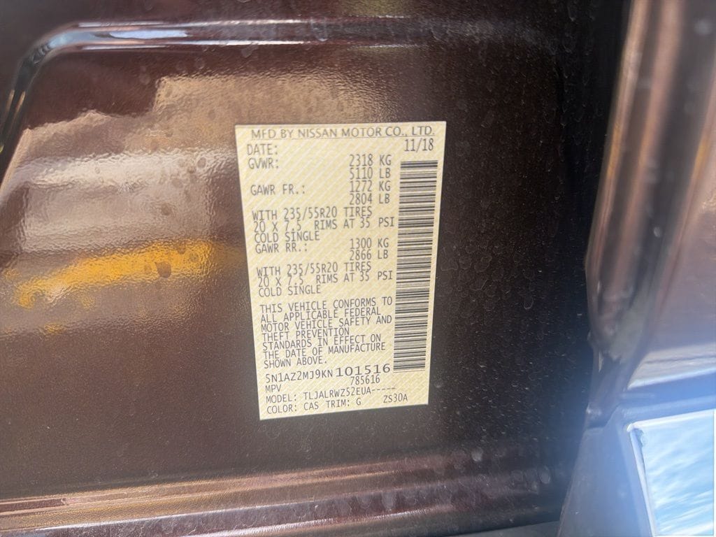 Certified. Mocha Almond Pearl 2019 Nissan Murano SL FWD CVT with Xtronic 3.5L V6 DOHC 24V ***BACK-UP CAMERA***, ***NISSAN CERTIFIED CAR!!!***, ***ONE OWNER CLEAN CARFAX!!**, CVT with Xtronic, Alloy wheels, AM/FM/CD/MP3/WMA Audio System, Carpeted Floor Mats & Carpeted Cargo Mat, CD player, Child-Seat-Sensing Airbag, Electronic Stability Control, Four wheel independent suspension, Fully automatic headlights, Navigation System, NissanConnect featuring Apple CarPlay and Android Auto, Panic alarm, Passenger door bin, Power Liftgate, Roof rack: rails only, Security system, Speed-sensing steering, Steering wheel mounted audio controls, Traction control, Turn signal indicator mirrors.